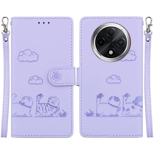 Funda de Cuero Rfid con Diseño de Gatos para Oppo A3 Pro 5G Global (Morado)