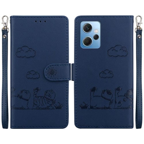Funda de Cuero Rfid con Diseño de Gatos Lindos para Redmi Note 12 4G (Azul)