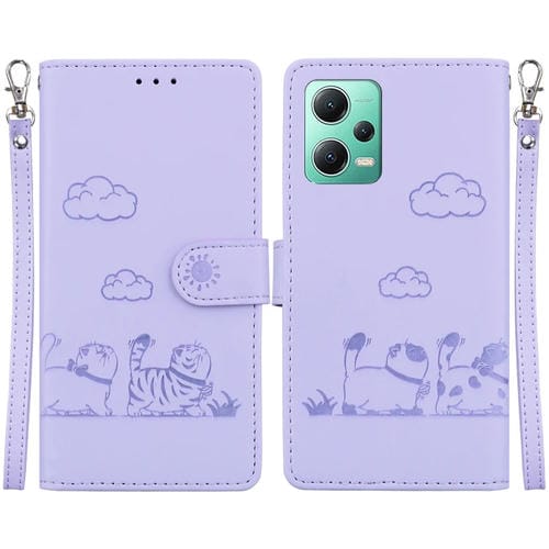 Funda de Cuero Rfid con Diseño de Gatos Lindos para Redmi Note 12 5G (Morado)