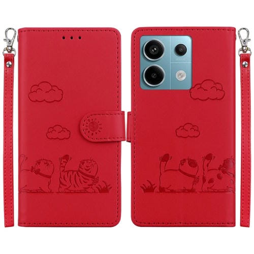 Funda de Cuero Rfid con Diseño de Gatos para Redmi Note 13 Pro 5G (Roja)