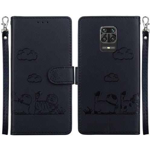 Funda de Cuero Rfid con Diseño de Gatos para Redmi Note 9 Pro (Negra)