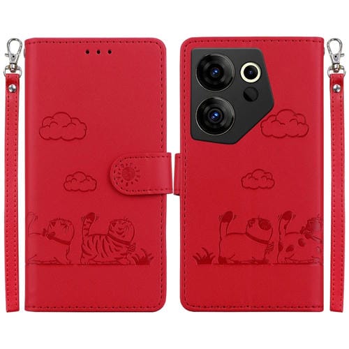 Funda de Cuero Rfid para Tecno Camon 20 Premier 5G con Diseño de Gatos (Rojo)