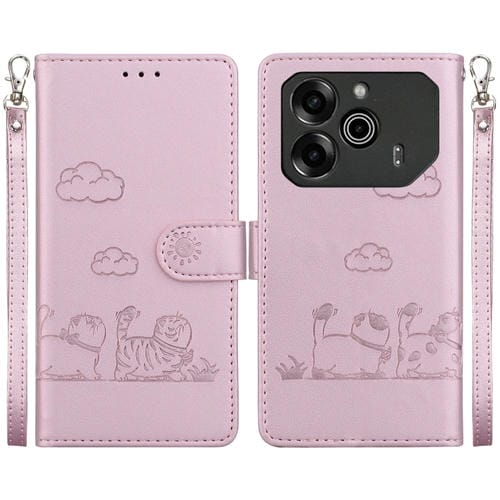 Funda de Cuero Rfid para Tecno Pova 6 5G y Pova 6 Pro 5G con Diseño de Gatos (Oro Rosa)