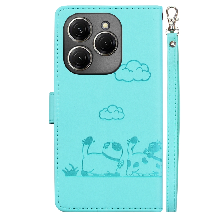 Funda de Cuero Rfid para Tecno Spark 20 Pro con Diseño de Gatos (Verde)