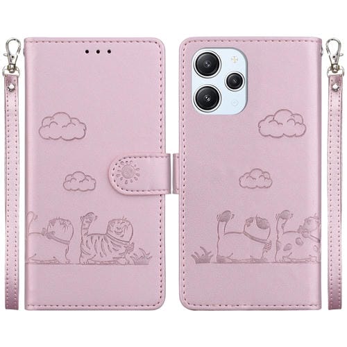 Funda de Cuero Rfid con Diseño de Gatos para Xiaomi Poco M6 Pro 5G (Oro Rosa)