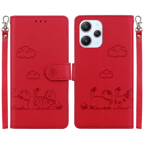 Funda de Cuero Rfid con Diseño de Gatos para Xiaomi Poco M6 Pro 5G (Roja)