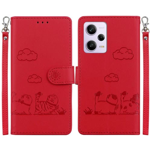 Funda de Cuero Rfid con Diseño de Gatos para Xiaomi Poco X5 Pro (Roja)