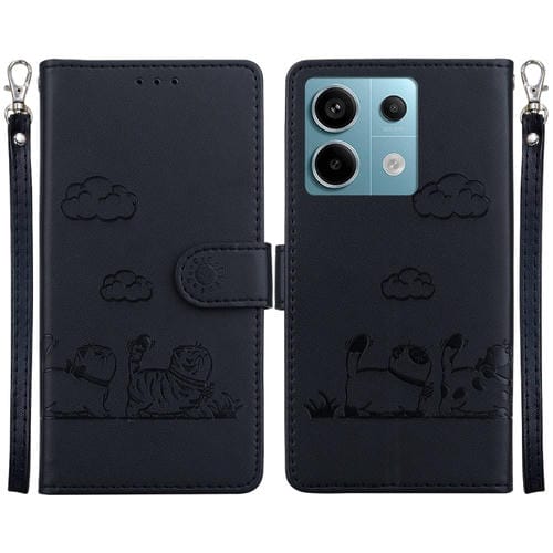 Funda de Cuero con Diseño de Gatos Lindos Rfid para Xiaomi Poco X6 5G (Negro)