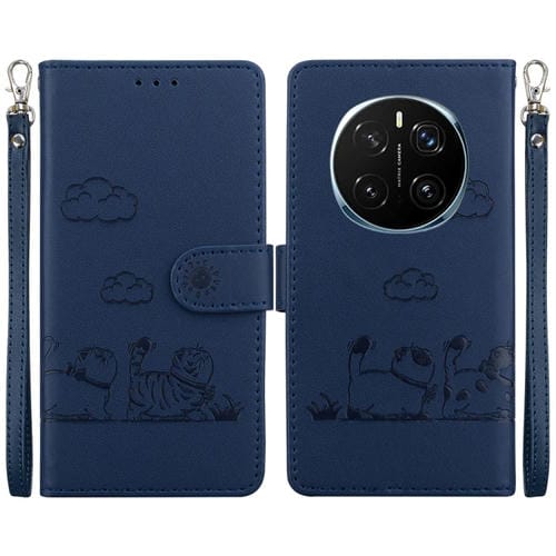 Funda de Cuero Rfid para Honor Magic7 Pro con Diseño de Gatos (Azul)