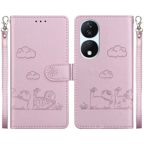 Funda de Cuero Rfid con Diseño de Gatos para Honor X7B y Play 50 Plus (Oro Rosa)