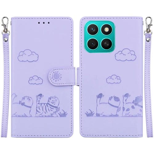 Funda de Cuero Rfid para Honor X8C 4G con Diseño de Gatos (Morada)