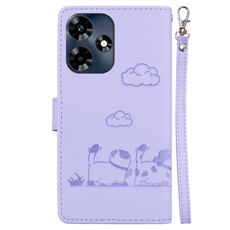 Funda de Cuero Rfid para Infinix Hot 30 4G con Diseño de Gatos (Morado)
