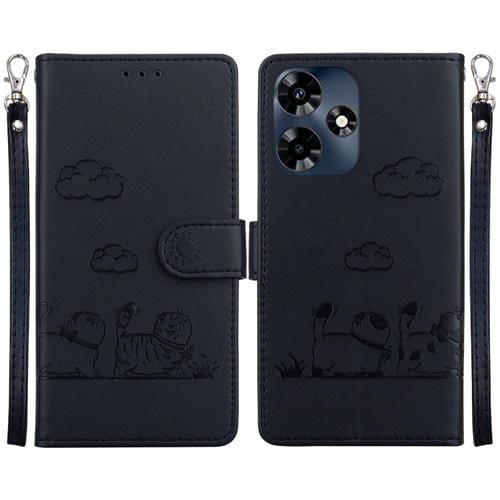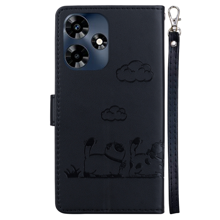 Funda de Cuero Rfid para Infinix Hot 30 4G con Diseño de Gatos (Negra)