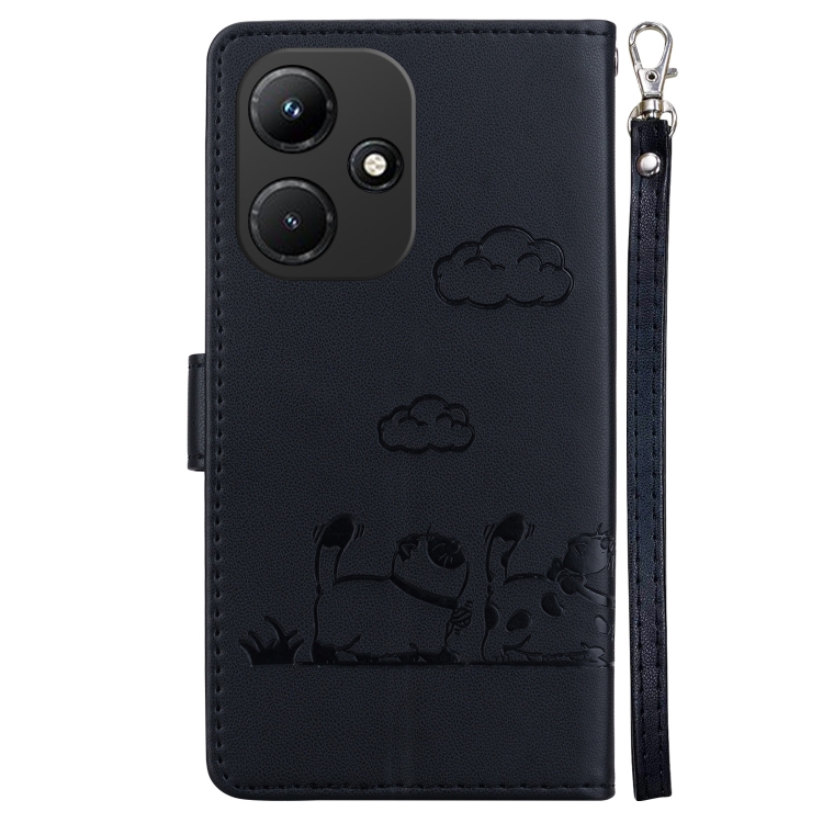 Funda de Cuero Rfid para Infinix Hot 30I con Diseño de Gatos (Negra)