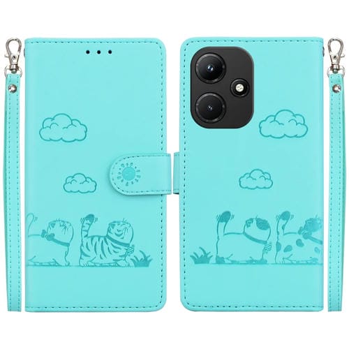 Funda de Cuero Rfid para Infinix Hot 30I con Diseño de Gatos (Verde)