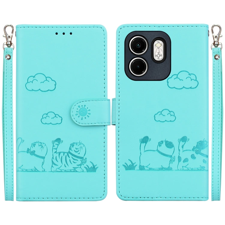 Funda de Cuero Rfid para Infinix Hot 50I Smart 9 con Diseño de Gatos (Verde)