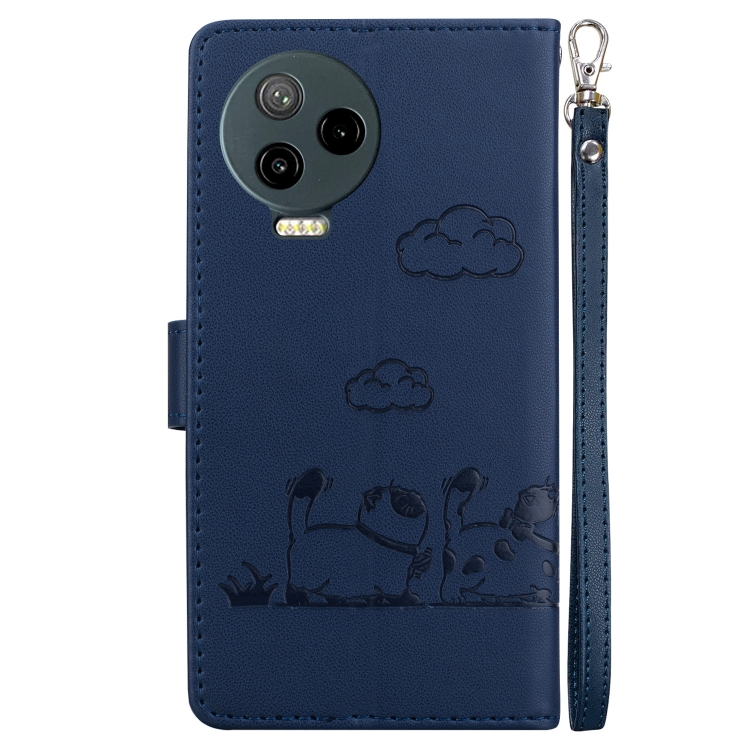 Funda de Cuero Rfid para Infinix Note 12 Pro 4G y Note 12 con Diseño de Gatos (Azul)