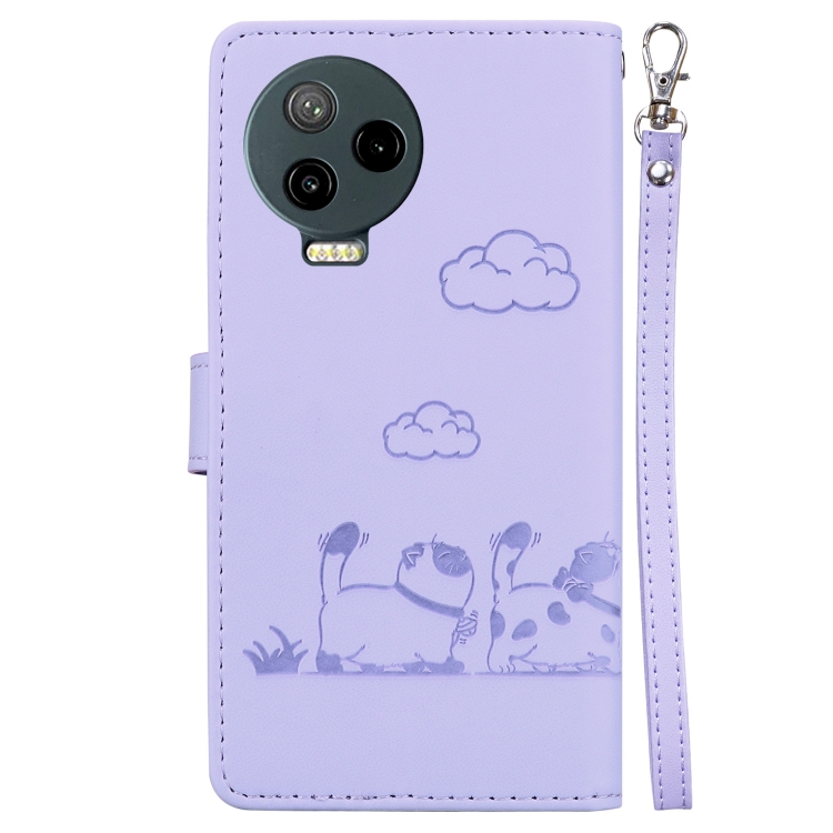 Funda Cuero Rfid para Infinix Note 12 Pro 4G y Note 12 con Diseño de Gatos (Morado)