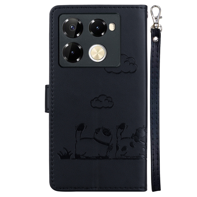 Funda de Cuero Rfid para Infinix Note 40 Pro 5G/4G con Diseño de Gatos (Negra)