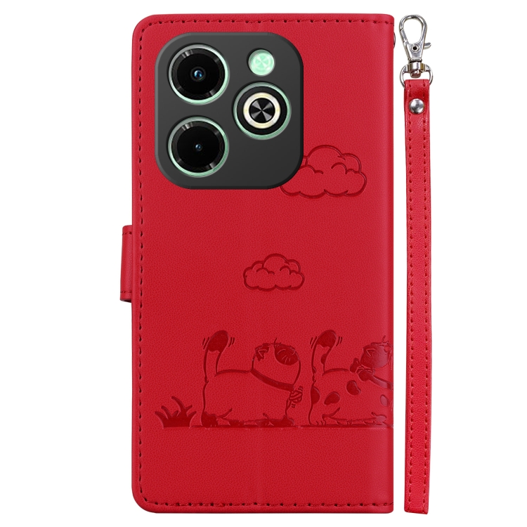 Funda de Cuero Rfid para Infinix Smart 8/8 HD/Hot 40I (Roja) con Diseño de Gatos