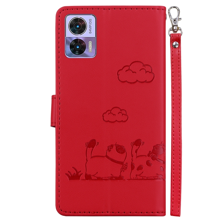 Funda de Cuero Rfid para Motorola Edge 30 Neo y 30 Lite con Diseño de Gatos (Rojo)