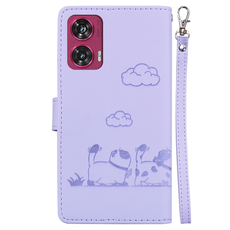 Funda de Cuero Rfid para Motorola Edge 50 Fusion con Diseño de Gatos (Morado)