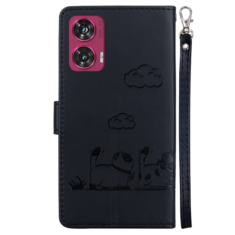 Funda de Cuero Rfid para Motorola Edge 50 Fusion con Diseño de Gatos (Negra)