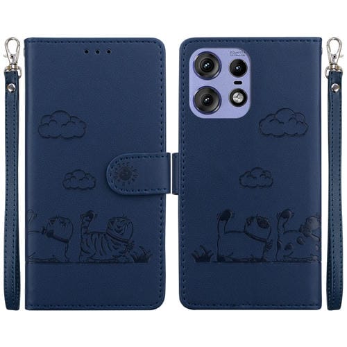 Funda de Cuero Rfid para Motorola Edge 50 Pro con Diseño de Gatos (Azul)
