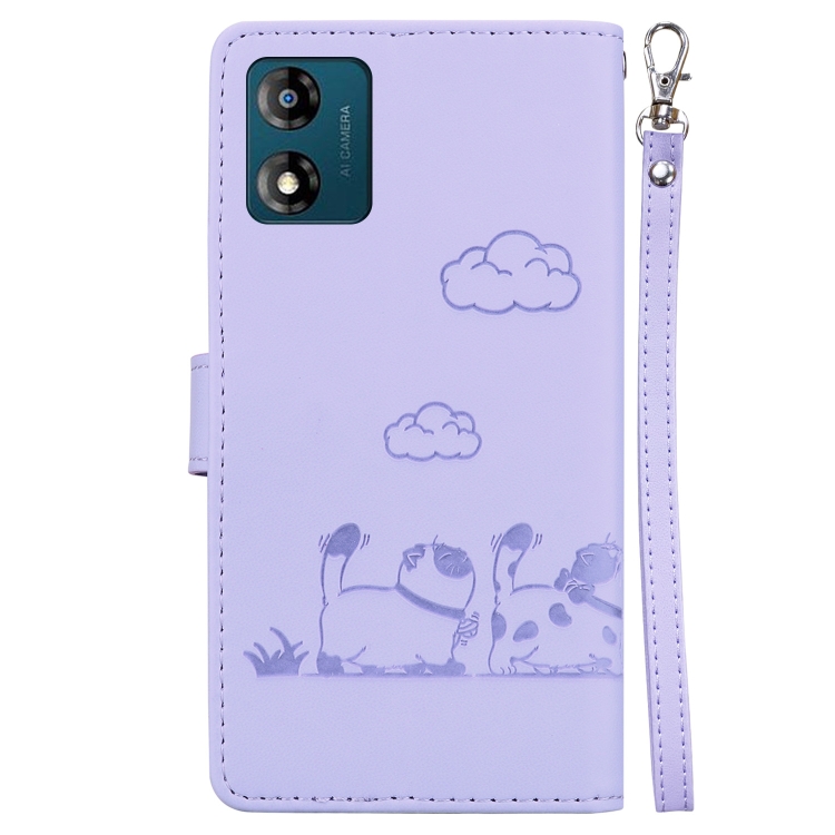 Funda de Cuero Rfid para Motorola Moto E13 con Diseño de Gatos (Morado)