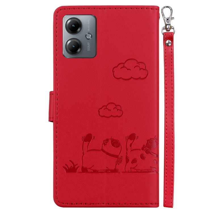 Funda de Cuero Rfid para Motorola Moto G14 con Diseño de Gatos (Rojo)