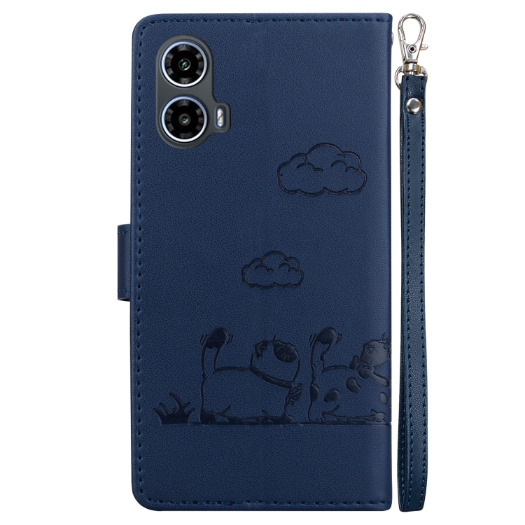 Funda de Cuero Rfid para Motorola Moto G34 5G con Diseño de Gatos (Azul)