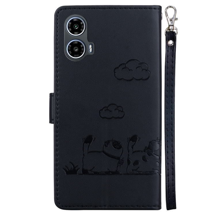 Funda de Cuero Rfid para Motorola Moto G34 5G con Diseño de Gatos (Negra)