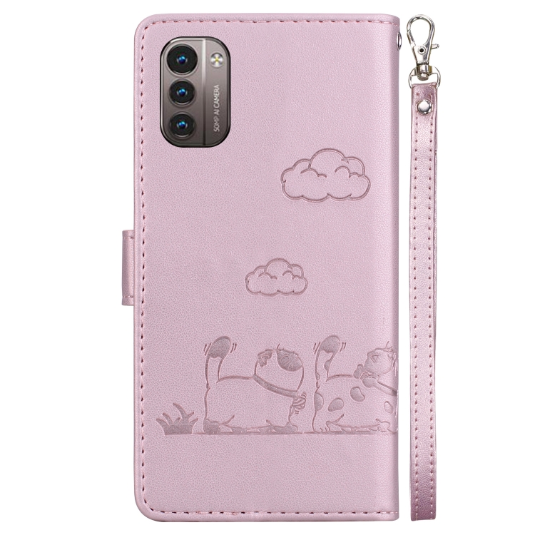 Funda de Cuero Rfid para Nokia G21/G11 con Diseño de Gatos (Oro Rosa)