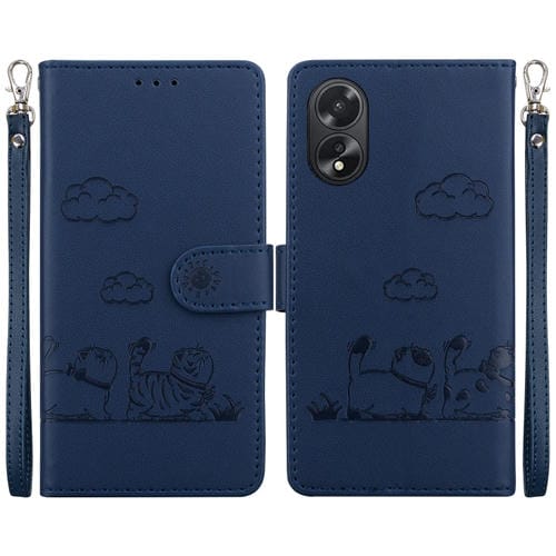 Funda de Cuero Rfid con Diseño de Gatos para Oppo A38 4G/A18 (Azul)