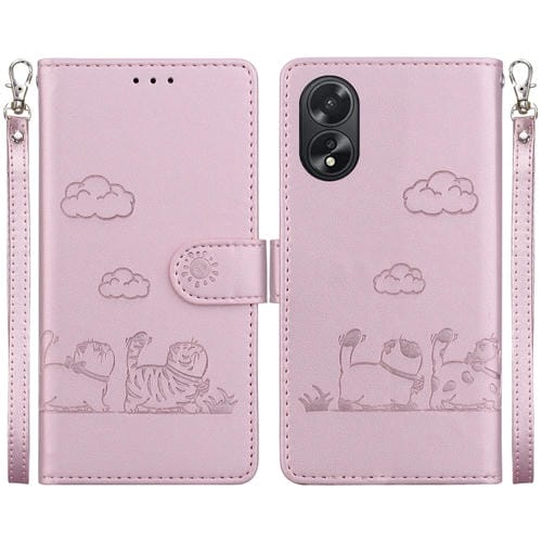 Funda de Piel Rfid con Diseño de Gatos para Oppo A38 4G/A18 (Oro Rosa)