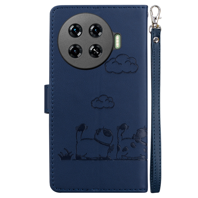 Funda de Cuero Rfid para Tecno Spark 20 Pro+ 4G con Diseño de Gatos (Azul)