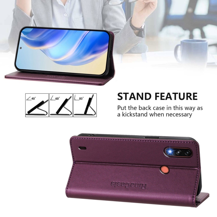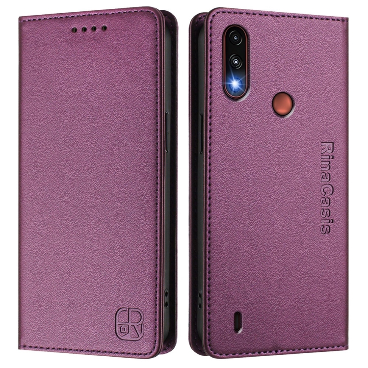 Funda de Cuero Rfid con Doble Pliegue y Succión Magnética para Motorola Moto E7 Power Rc01 (Violeta)