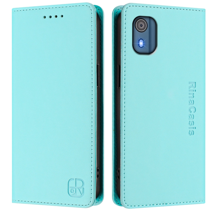 Funda de Cuero Rfid con Doble Pliegue y Succión Magnética para Nokia C02 Rc01 (Verde Menta)