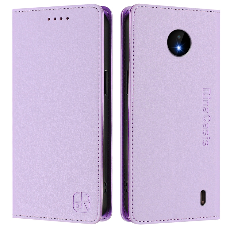 Funda de Cuero Rfid con Doble Pliegue y Succión Magnética para Nokia C10/C20 Rc01 (Morado Claro)