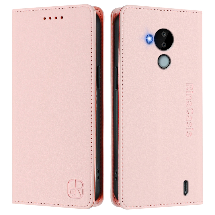 Funda de Cuero Rfid con Doble Pliegue y Succión Magnética para Nokia C30 Rc01 (Rosa)