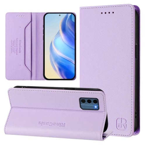 Funda de Cuero Rfid con Doble Pliegue y Succión Magnética para Nokia C300 Rc01 (Morado Claro)