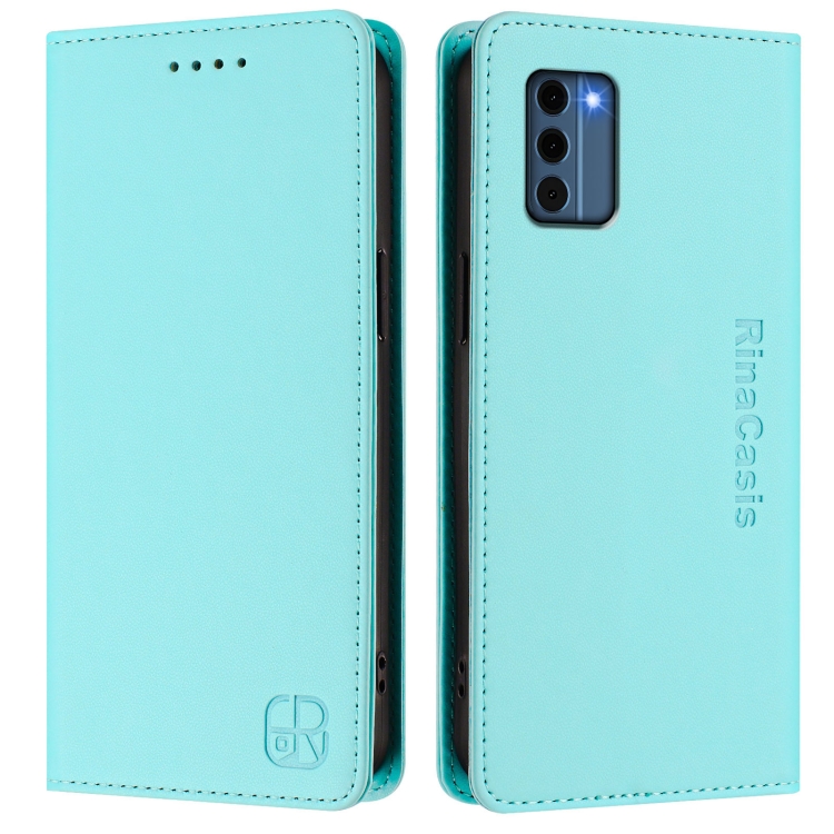 Funda de Cuero Rfid para Nokia C300 Rc01 con Doble Pliegue y Succión Magnética (Verde Menta)