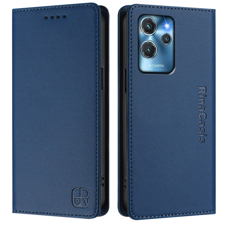 Funda de Cuero Rfid con Doble Pliegue y Succión Magnética para Oukitel C32 Rc01 (Azul Oscuro)