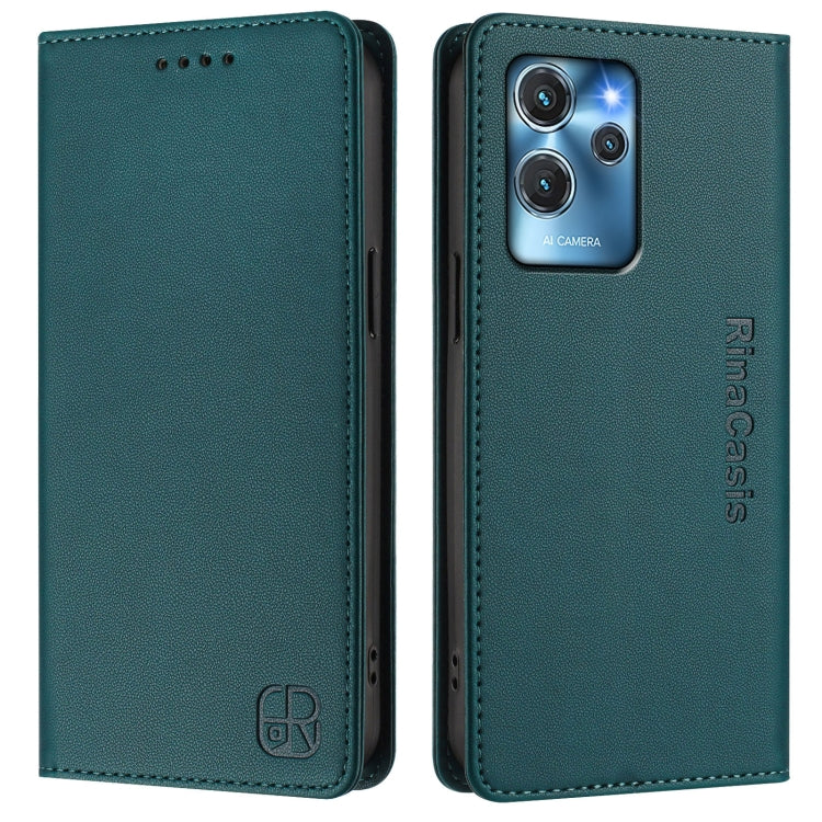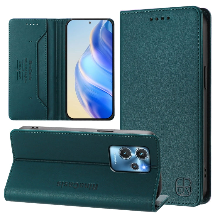 Funda de Cuero Rfid con Doble Pliegue y Succión Magnética para Oukitel C32 Rc01 (Verde Oscuro)