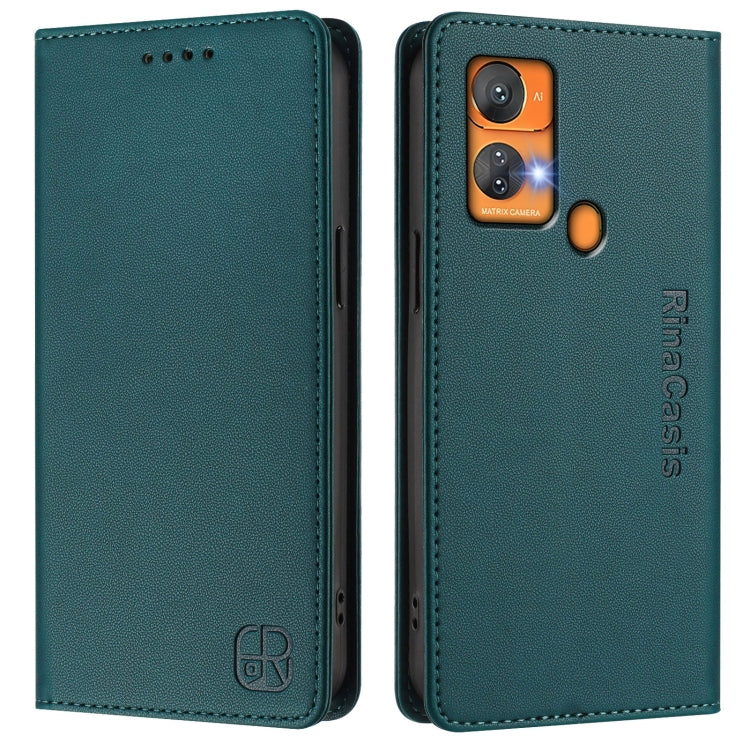 Funda de Cuero Rfid para Oukitel C33 Rc01 con Doble Pliegue y Succión Magnética (Verde Oscuro)