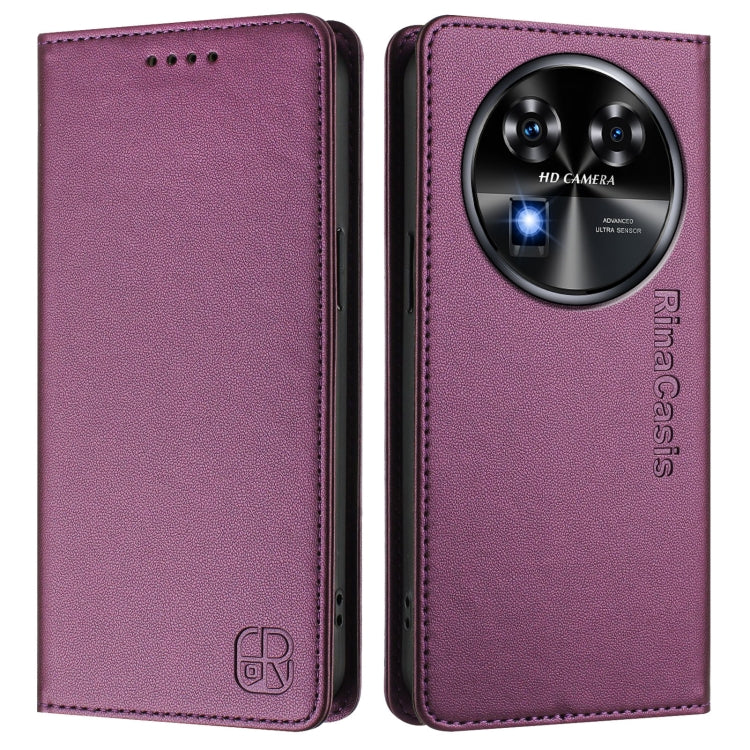 Funda de Cuero Rfid con Doble Pliegue y Succión Magnética para Oukitel C37 Rc01 (Violeta)