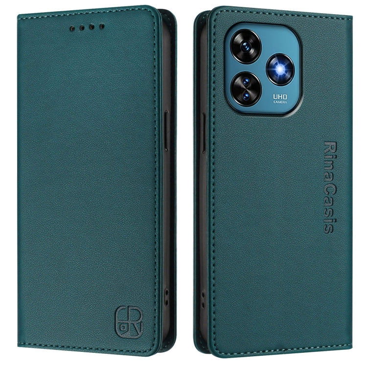 Funda de Cuero Rfid con Doble Pliegue y Succión Magnética para Oukitel C51 Rc01 (Verde Oscuro)