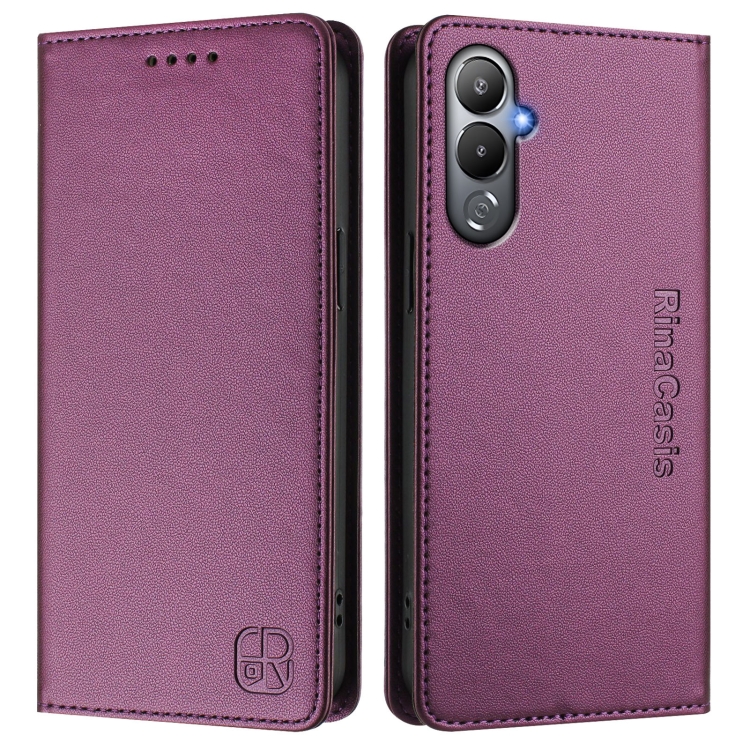 Funda de Cuero Rfid para Tecno Pova 4 Rc01 con Doble Pliegue y Succión Magnética (Violeta)