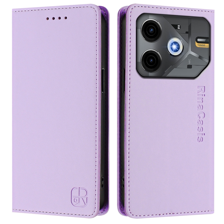 Funda de Cuero Rfid para Tecno Pova 6 Neo Rc01 con Doble Pliegue y Succión Magnética (Morado Claro)