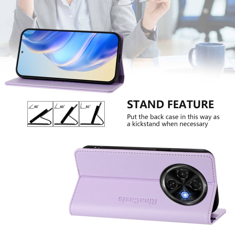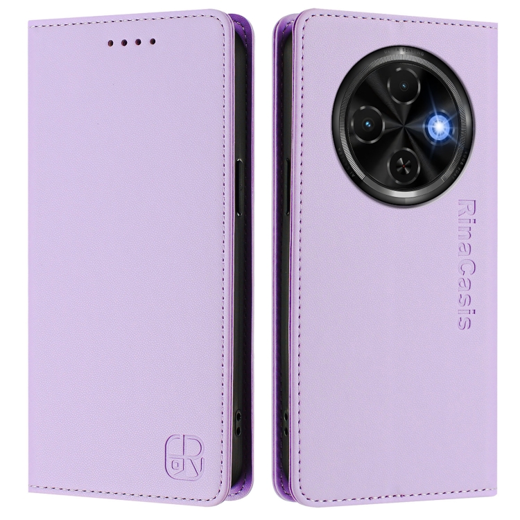 Funda de Cuero Rfid con Doble Pliegue y Succión Magnética para Tecno Spark 30C Rc01 (Morado Claro)